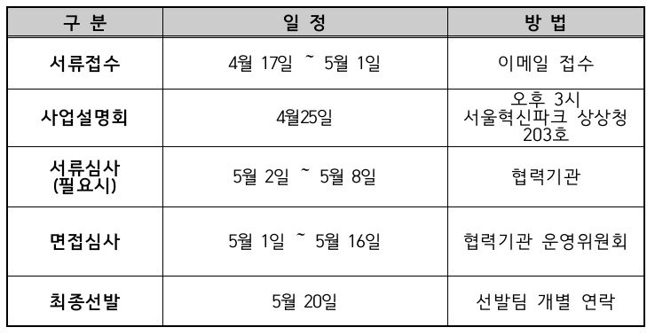 - 장소 : 서울혁신파크 상상청 2층 203호 MTA서울랩