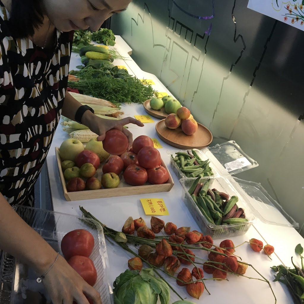 세번째 팀으로는 파벨 팀입니다. 러시아에서 온 파벨이 한국에 거주하면서 마주친 거주 문제에서 디자인 씽킹 프로젝트를 시작했다가 점심을 먹는 중에 '서울에서 타향살이하는 사람들은 건강한 음식을 먹으며 살고 있을까?' 하는 의문이 들면서 주제를 바꾸었다고 합니다. 이후 파벨 팀은 타향살이 중인 사람들에게 식단에 대한 설문 조사를 시작했습니다. 그랬더니 대부분의 사람들이 건강하고 신선한 음식을 먹기 어려웠다고 답했습니다. 그러면 건강하고 신선한 음식을 먹을 기회가 있다면 먹을것인가? 에 대한 물음에는 100% 가 그렇다고 대답했습니다. 어떻게 신선한 음식을 제공할지 고민하던 파벨 팀은 서울에서 1시간 거리에 있는 농부들을 만나 저렴한 가격으로 신선한 음식을 가져왔습니다. 신선한 음식을 먹기 힘든 이유는 먼 거리에서 농작물을 한 번에 재배하기 때문이라는 것을 발견했기 때문이라고 하는데요. 파벨팀은 서울 근교에서 사온 채소를 가지고 아산상회에서 파머스 마켓 Farmer's Market 을 열어 타향살이 중인 팀프레너들에게 신선한 식재료를 판매했습니다.