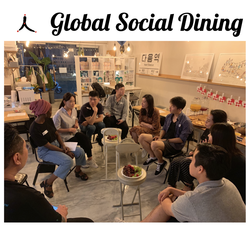 첫번째로 별자리 팀 이야기를 들어보겠습니다. 별자리 팀원들은 북한, 엘살바도르, 인도네시아, 덴마크 등 다양한 국가에서 모였습니다. 다양한 곳으로부터 온 개인들이 모여 별자리가 되었다는 뜻의 별자리 팀. 이 이름과 의미가 묻어나는 글로벌 소셜 다이닝 Global Social Dining 을 기획했었습니다. 각기 다른 나라에서 모인만큼 의사소통부터 쉽지 않았다고 하는데요. 그림을 그려가면서 아이디어를 공유하며 기획했다고 합니다. 디자인 씽킹 주제에 맞는 대상으로 탈북민을 심층 인터뷰 했던 별자리팀은 하나원이 가진 탈북민 지원의 한계에 주목했습니다. 별자리팀은 탈북민에게 진짜 필요한 것은 '커뮤니티' 라는 것을 발견하였고 서울에서 타향살이 중인 사람들을 친근감있게 모을 수 있는 '글로벌 소셜 다이닝' 이라는 장을 마련하게 된 것입니다. 이 날 별자리팀은 각 나라 음식을 요리해서 참가자들과 다같이 저녁 식사를 했습니다. 그리고 북한에서 온 분을 초청해서 북한 요리인 두부밥을 참가자들과 함께 만들었습니다. 식사와 요리시간 이후에는 다양한 문화를 배경으로 지닌 개인들의 이야기를 나누었다고 합니다. 그야말로 글로벌 소셜 다이닝이군요.