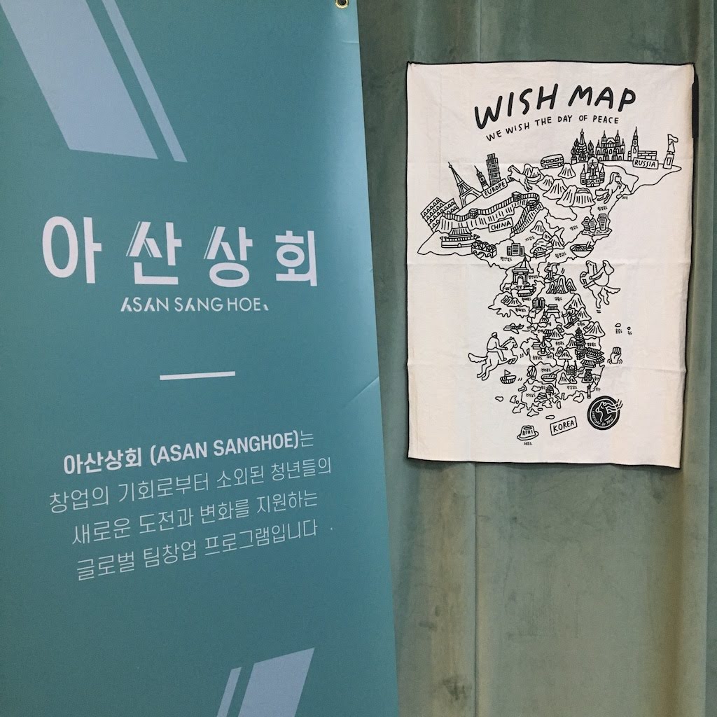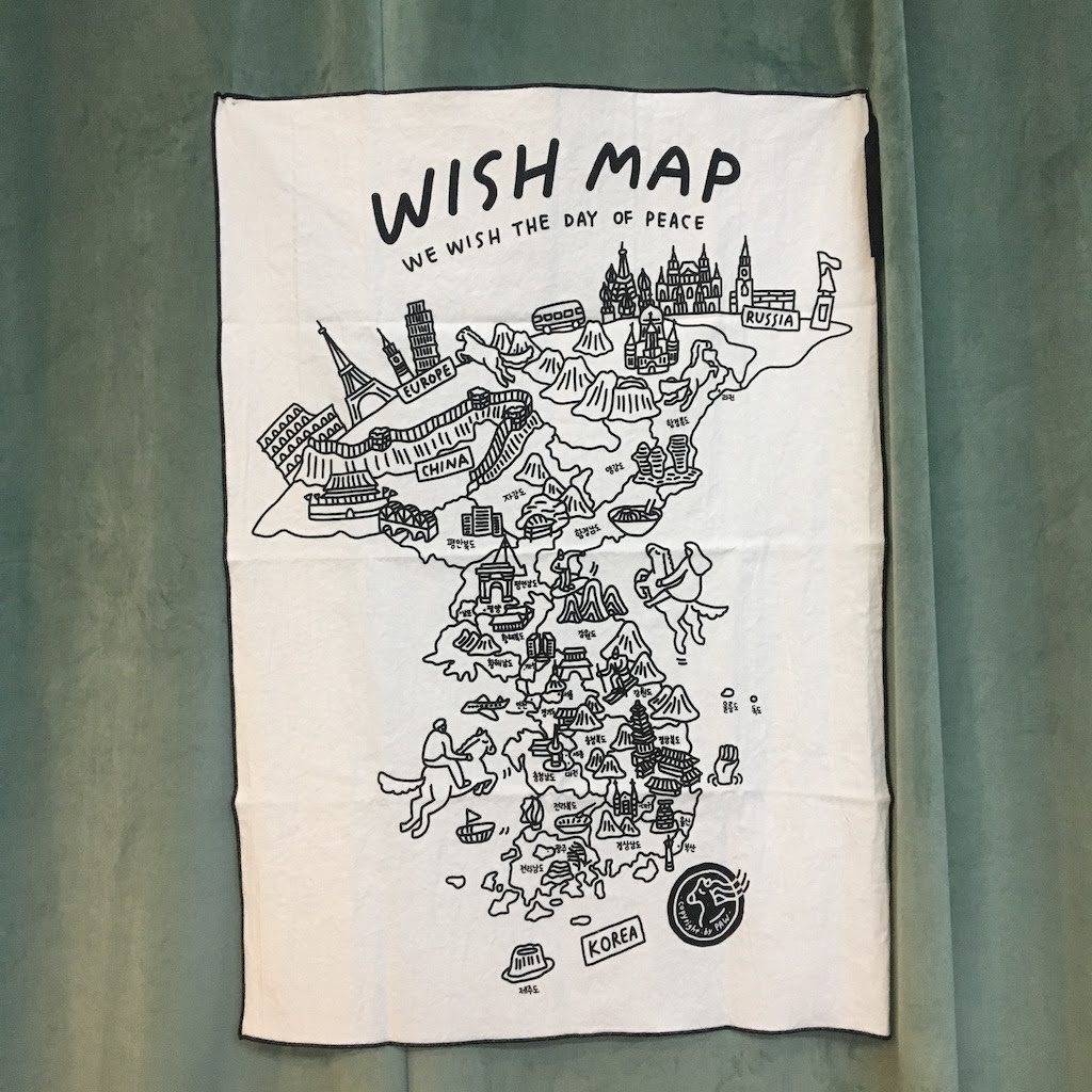 글로벌 소셜 다이닝이 열렸던 장소인 '다음역' 을 방문했었습니다. 다음역에서 판매하는, 남북이 하나된 지도를 발견하고는 냉큼 구입한 뒤 아산상회 공간에 바로 달아놓았습니다. 통일을 모티브로 제품을 디자인하는 'PAW studio' 제품입니다. (www.pawstudio.kr)