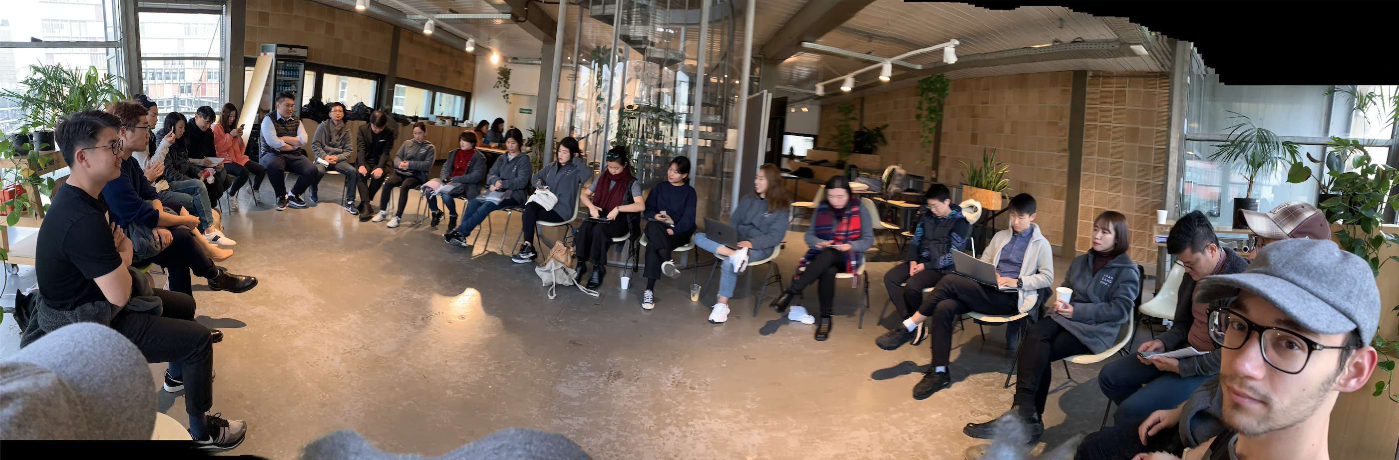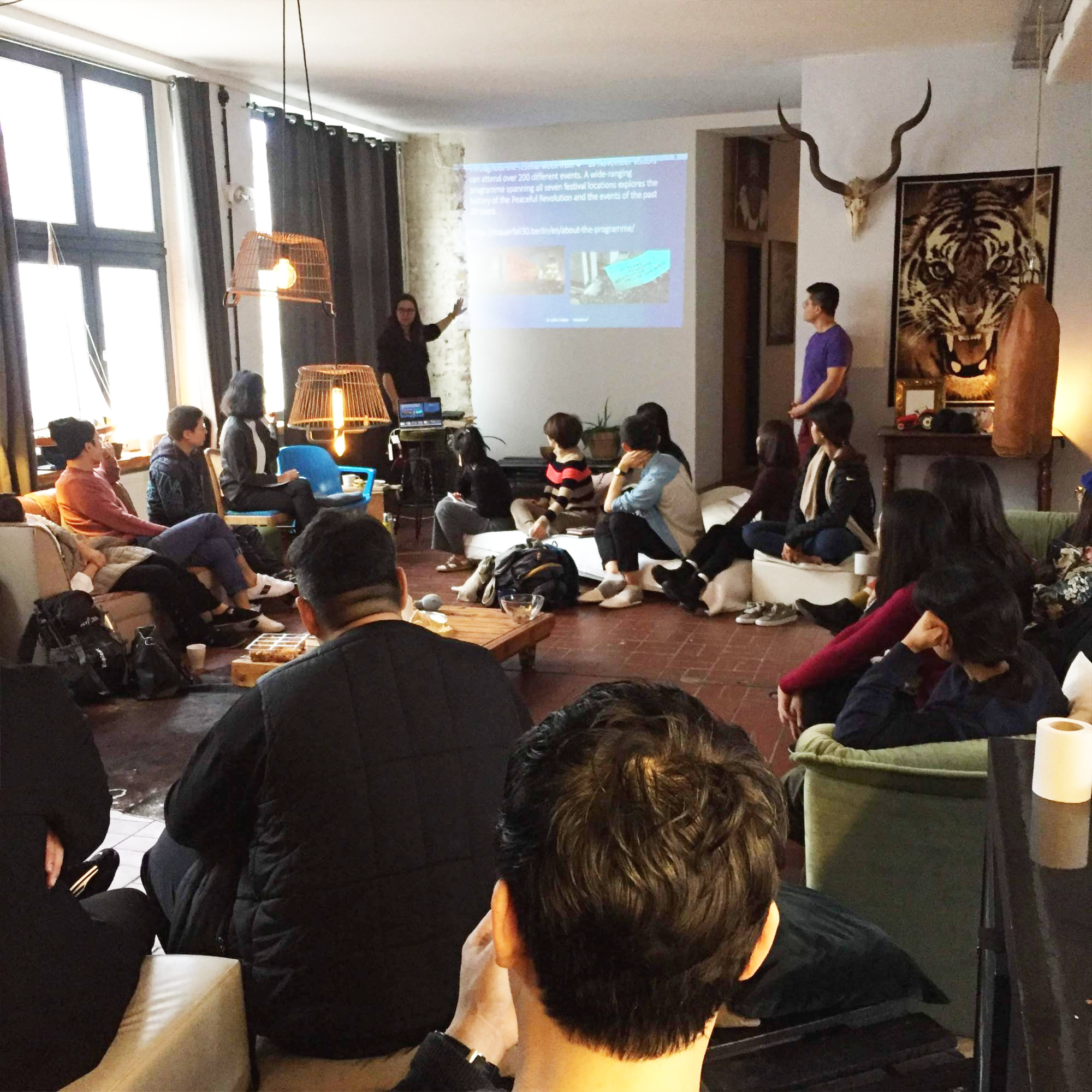 프로젝트 팀별 일정을 마치고 다시 베를린에 모인 아산상회 팀프레너들. 각 팀별로 다른 곳을 보고 돌아와 서로의 경험을 공유합니다.