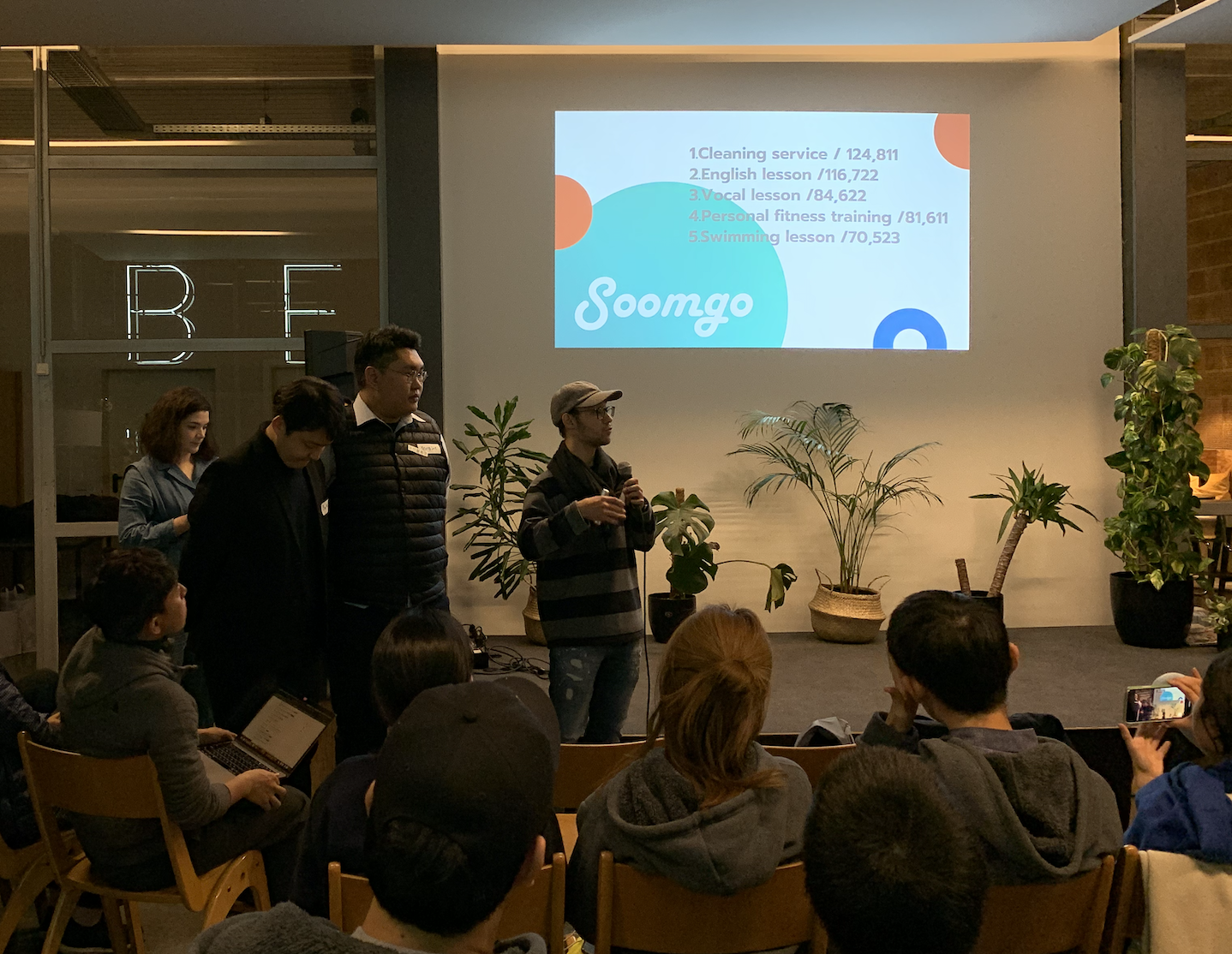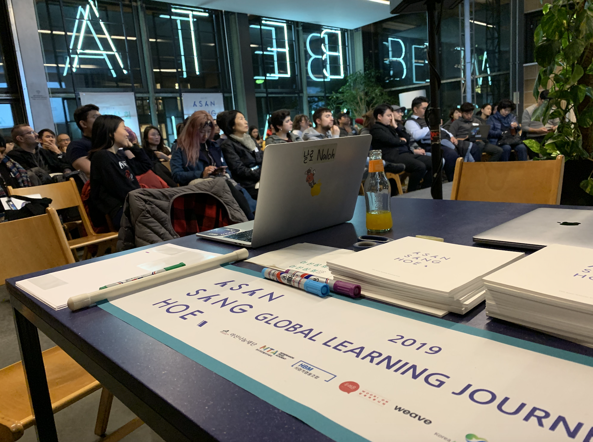 베를린 러닝저니의 마지막 밤, 다양한 사람들이 모인 이 자리에서 모든 팀이 각자의 프로젝트를 발표합니다. 외국인 청중에 맞게 모두가 영어로 프로젝트 발표를 준비하는 센스! 를 발휘하는군요.
