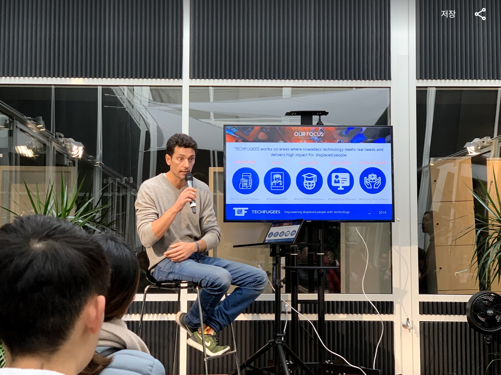 다음으로 Techfugees 테크퓨지스 를 만났습니다. 테크퓨지스는 기술을 통해 난민들에게 살아갈 능력을 키워주는 단체입니다.
